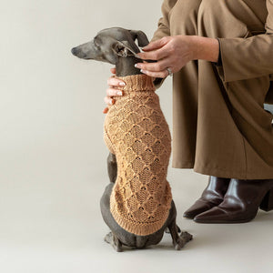 Gemütlich trifft auf Couture. Reich an Textur und Wärme, verwandelt der Camel Lattice Alpaca Hundepullover einfache Spaziergänge in stilvolle Statements. Für Hunde, die Eleganz wie ein zweites Fell tragen. Handgefertigt aus Alpaka-Fasermischungen Weich und warm im Griff Nicht kratzig & hypoallergen - Lucho ist ein italienisches Windspiel und trägt Größe X Small. Über die Größen (Größenanleitung in der Fotogalerie) Um die Größe Ihres Hundes zu berechnen, müssen Sie die Länge Ihres Hundes vom Halsansatz bis zum Schwanzansatz messen, was als Hauptmaß in unserer Kleidung dient. Der Hals sowie der Ratgeber zur Rasse in der Größentabelle helfen Ihnen, die richtige Größe für Ihren Hund im gewünschten Produktstil auszuwählen.