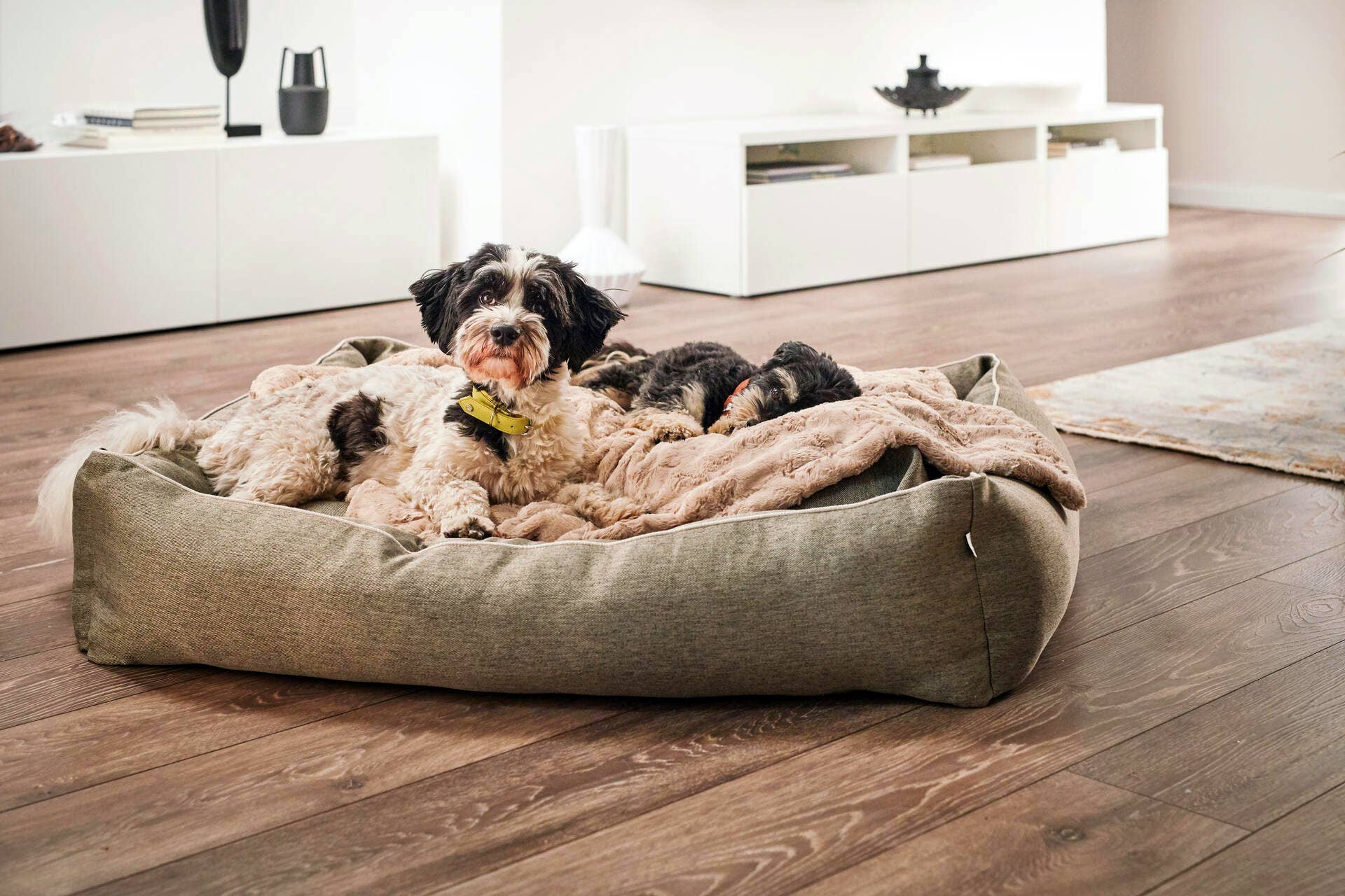 Die besonders edle Hundedecken COZY von LABONI sind eine wunderbare Alternative zu echtem Pelz. Die Decken sind aus einem sehr hochwertigen Fellimitat gefertigt und überzeugen durch Ihre flauschige Oberfläche und eine elegante Wendeoptik. Sorgen Sie mit der weichen Doubleface-Decke von LABONI für gemütliche Behaglichkeit im Hundebett und ein Gefühl von purem Luxus Die hochwertige Hundedecke von LABONI ist ein klassischer Kunstpelz im Doubleface-Design und perfekt für Vierbeiner, da das hochwertige Material antistatisch ist. Die weiche Rückseite der Wendedecke ist aus Samt und passt sich Ton-in-Ton dem schlichten Design an. Ob als elegantes Plaid für das Sofa, als kuscheliger Überwurf für das Hundebett, oder für unterwegs im Auto, im Restaurant, bei Freunden oder im Urlaub. Mit der Hundedecke COZY von LABONI haben Sie einen eleganten Ruhebereich und den perfekten Kuschelplatz für Ihren Hund immer mit dabei. Bei Verschmutzung kann COZY problemlos in der Waschmaschine gewaschen werden.
