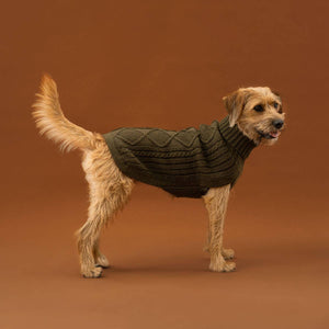 Der Forest Green Aran Diamond Knit Alpaka-Woll-Hundepullover bringt klassischen Stil in die Garderobe Ihres Hundes. Hergestellt aus hochwertiger Alpakawolle, sorgt er für Wärme, Weichheit und Langlebigkeit. Handgefertigt aus Alpaka-Fasermischungen Weich und warm im Griff Nicht kratzig & hypoallergen Leinenöffnung – Lucy ist ein einzigartiger Mix und trägt Größe Medium. Über die Größen (Größenanleitung in der Fotogalerie) Um die Größe Ihres Hundes zu berechnen, müssen Sie die Länge Ihres Hundes vom Halsansatz bis zum Schwanzansatz messen, was als Hauptmaß in unserer Kleidung dient. Der Hals sowie der Ratgeber zur Rasse in der Größentabelle helfen Ihnen, die richtige Größe für Ihren Hund im gewünschten Produktstil auszuwählen.